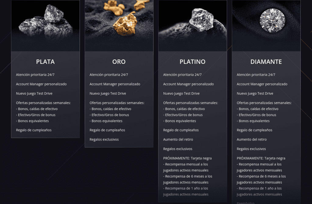 | 🏆 Programa VIP | Existe un programa VIP, aunque no se detalla la información sobre sus beneficios específicos. |