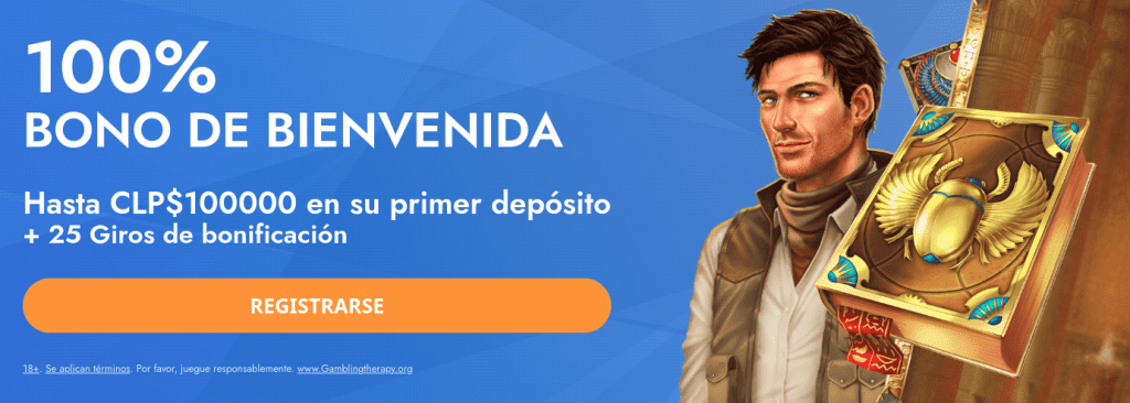 | 🎁 Bonos | Hasta $600.000 CLP en bonificaciones distribuidos en los tres primeros depósitos, más 25 giros gratis en Book of Dead. |