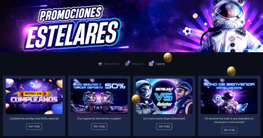 Estelarbet ofrece una variedad de bonos y promociones atractivas para maximizar tu experiencia de juego.
