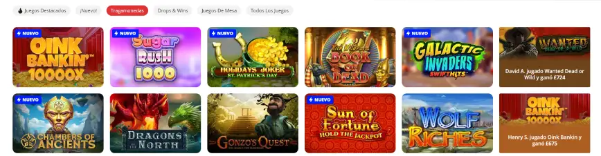 - 🎰 Gonzo’s Quest: Esta tragamonedas de NetEnt, conocida en todo el mundo, es una adición imprescindible al catálogo.