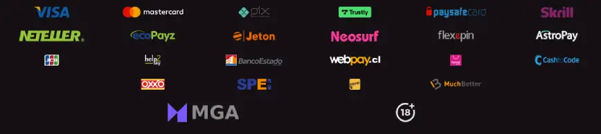 | 💳 Métodos de pago | Mastercard, Visa, Transferencias bancarias, MACH, Skrill, Neteller, Astropay, ecoPayz, etc |