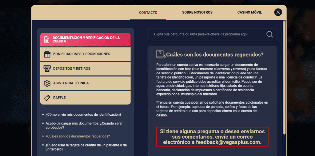 - ⁉️ Sección de Preguntas Frecuentes (FAQ): Antes de optar por contactar al servicio de soporte, los usuarios pueden visitar la sección de preguntas frecuentes de VegasPlus. Esta área está bien organizada y cubre una amplia gama de temas, desde consultas sobre cómo retirar dinero hasta detalles sobre los bonos.