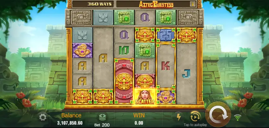 Aztec Priestess presenta una configuración poco convencional que se desmarca de las tragamonedas tradicionales de 5 carretes. En su lugar, TaDa Gaming ha optado por un diseño de 6 carretes, lo que añade una dimensión extra a la experiencia de juego. Este diseño inusual ayuda a mantener el juego fresco y emocionante, tanto para veteranos como para nuevos jugadores.
