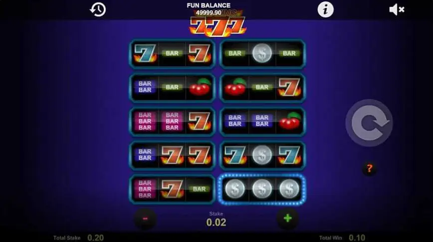Blazing 777 mantiene el formato tradicional de tres rodillos, un diseño que muchos jugadores veteranos considerarán familiar y reconfortante. Este formato se integra de manera eficiente en la jugabilidad, ofreciendo simplicidad y enfoque en una sola línea de pago. Este enfoque minimalista no solo es un homenaje a las antiguas máquinas, sino que también permite a los jugadores concentrarse en el ritmo del juego y en la búsqueda de ese codiciado premio gordo. La experiencia es ideal tanto para jugadores nuevos que buscan una introducción sencilla, como para aquellos más experimentados que valoran la pureza del juego clásico.