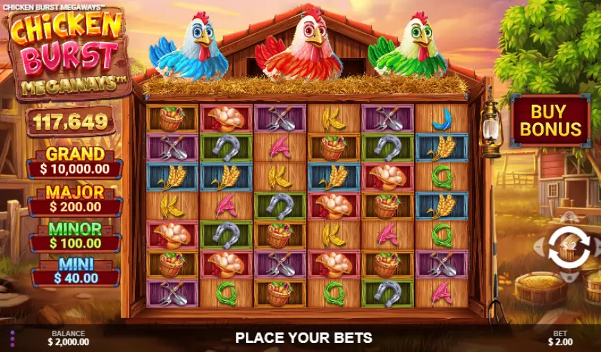 La narrativa detrás de Chicken Burst Megaways te lleva a un escenario de granja vibrante, donde cada giro de los carretes te acerca más a una aventura llena de recompensas. El tema de la agricultura no sólo es visualmente atractivo, sino que también crea un ambiente agradable y emocionante, perfecto para todos los jugadores que buscan algo diferente en su experiencia de juego.