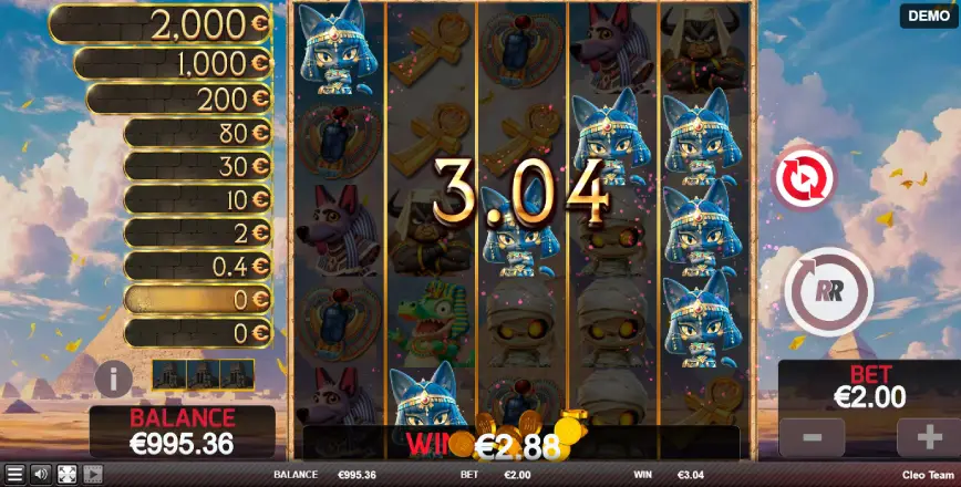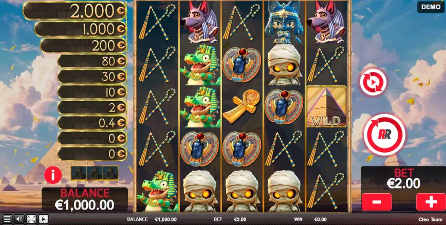 El diseño sonoro de Cleo Team es igualmente impresionante, con una banda sonora envolvente que complementa perfectamente la temática egipcia. Cada efecto sonoro está cuidadosamente compuesto para intensificar la atmósfera del juego, haciendo que los jugadores se sientan como si estuvieran explorando un templo en busca de tesoros ocultos. Esta atención al detalle en el diseño de sonido mejora significativamente la experiencia de juego, creando un entorno auditivo que es tan atractivo como el visual.