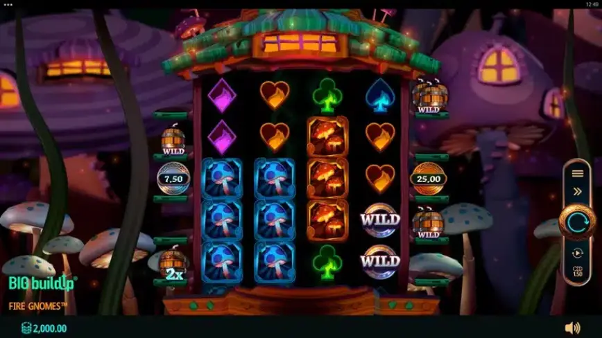 Al analizar la calidad gráfica de Fire Gnomes, es evidente que el equipo de Crazy Tooth Studio ha puesto un gran esfuerzo en crear un entorno visualmente atractivo y detallado. Los gráficos presentan un paisaje de ensueño, donde las casas de setas sirven como telón de fondo para los carretes. Los símbolos en el juego son una mezcla creativa de palos de naipes y setas multicolores, cada uno diseñado con atención al detalle.
