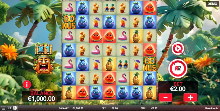La volatilidad en Hawaiitopia es media, lo que significa que las ganancias pueden no ser tan frecuentes como en juegos de baja volatilidad, pero cuando ocurren, tienden a ser más significativas. Esto equilibra el riesgo y la recompensa, ofreciendo una experiencia de juego robusta para aquellos que disfrutan de un poco de emoción con la posibilidad de obtener buenos premios.