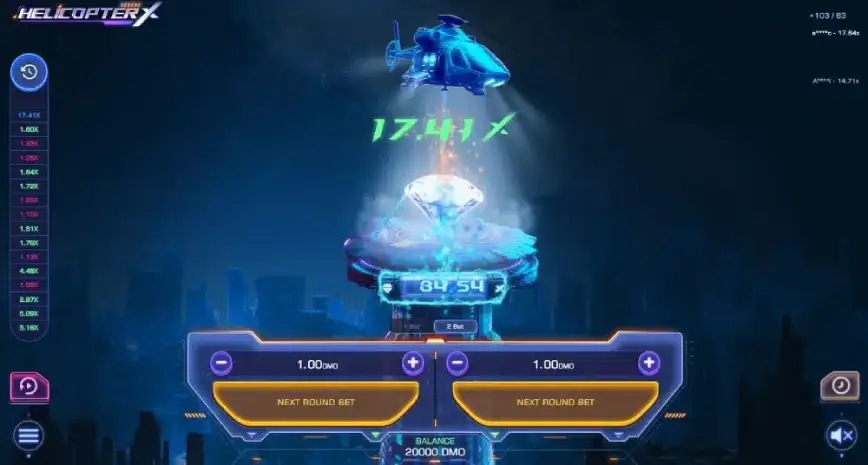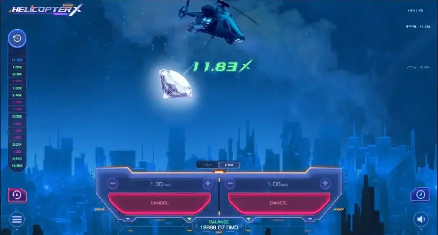 • 💯 Juega con el panel de apuestas múltiples: HelicopterX permite realizar dos apuestas simultáneamente. Usa esta función para diversificar tus riesgos con diferentes estrategias para cada apuesta.