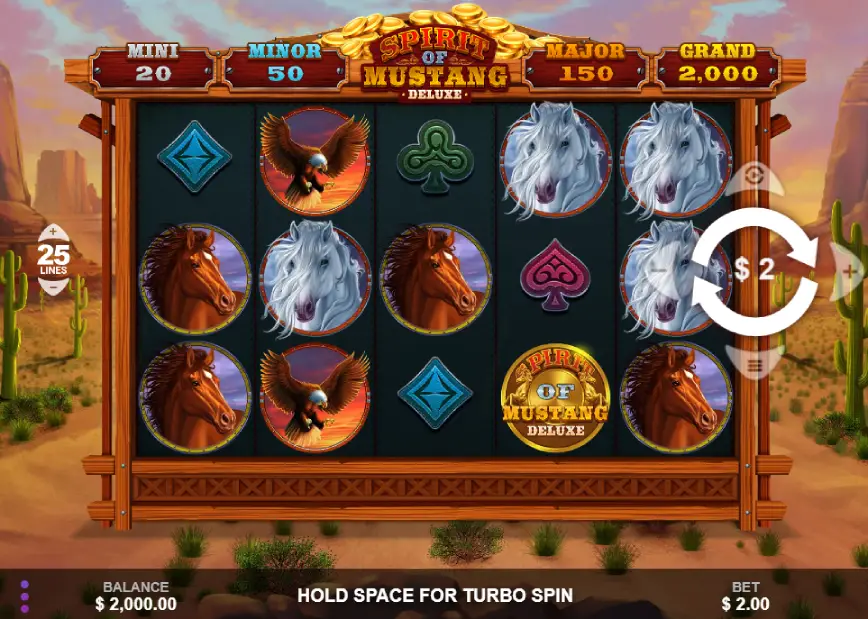 La inspiración de Spirit of Mustang Deluxe claramente proviene de la iconografía clásica del Lejano Oeste. A medida que los jugadores giran los rodillos, se encontrarán sumergidos en un mundo lleno de elementos típicos del oeste, como águilas y caballos de diferentes colores, cada uno con su propio valor de premio. Esta ambientación no solo añade autenticidad a la experiencia de juego, sino que también despierta la nostalgia de las películas y cuentos del oeste que todos conocemos.