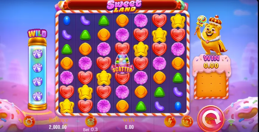 La trama de Sweet Land no es convencional en el sentido de tener una historia lineal, pero la narrativa implícita te lleva a recorrer un reino de dulces donde cada giro y combinación de símbolos descubren nuevas formas de ganar. Los jugadores deben agrupar símbolos dulces adyacentes para conseguir combinaciones ganadoras y activar emocionantes funciones de bonificación.
