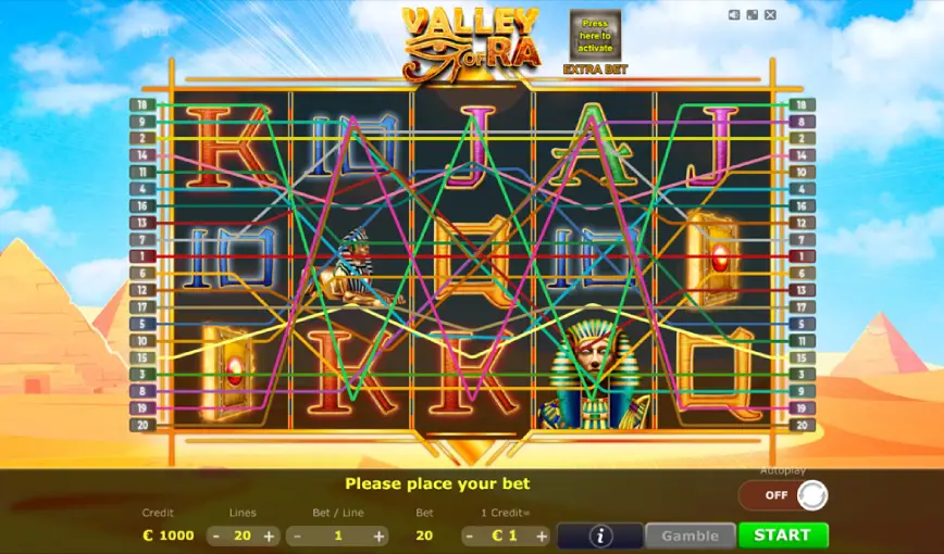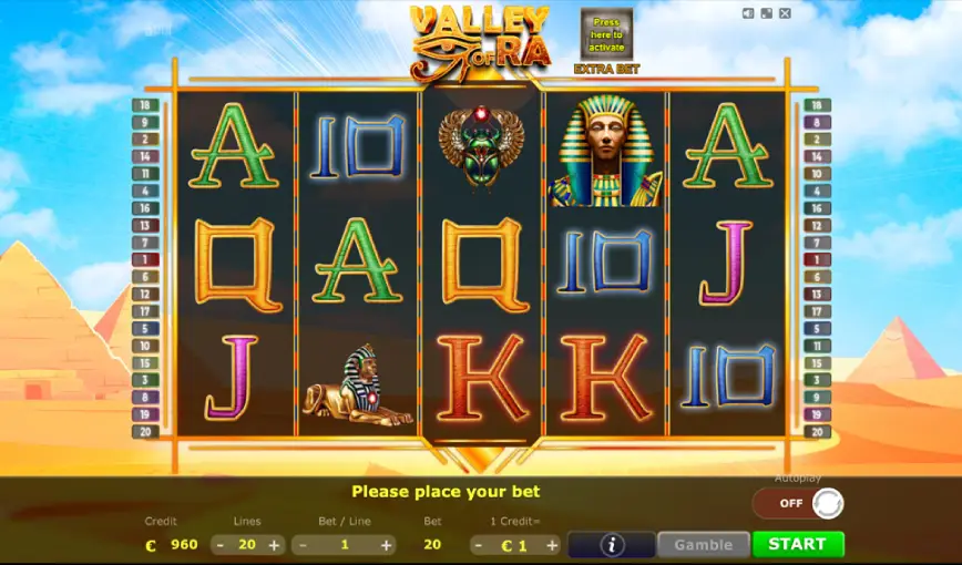 Valley of Ra ofrece a los jugadores una amplia gama de opciones de apuesta, haciéndolo accesible a los jugadores que prefieren ajustar su estrategia de apuesta.