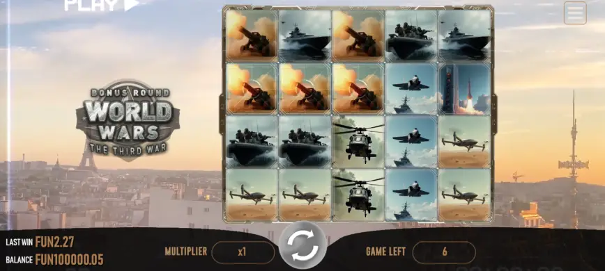 World Wars The Third War es fácil de jugar gracias a una interfaz de usuario intuitiva que permite a los jugadores centrarse en la acción. Los controles son simples y están claramente etiquetados, lo que facilita la navegación incluso para jugadores principiantes. Los jugadores pueden ajustar fácilmente sus apuestas y activar giros con solo unos clics, lo que permite un juego rápido y sin complicaciones.